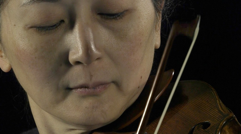 Two Étudesis a film in two corresponding halves. In the first, Mieko Kanno performs Étude no. 32 from John Cage’s larger score Freeman Études (1997- 1980/1989-1990) while the second attempts to find equivalences through 16mm film and sound.