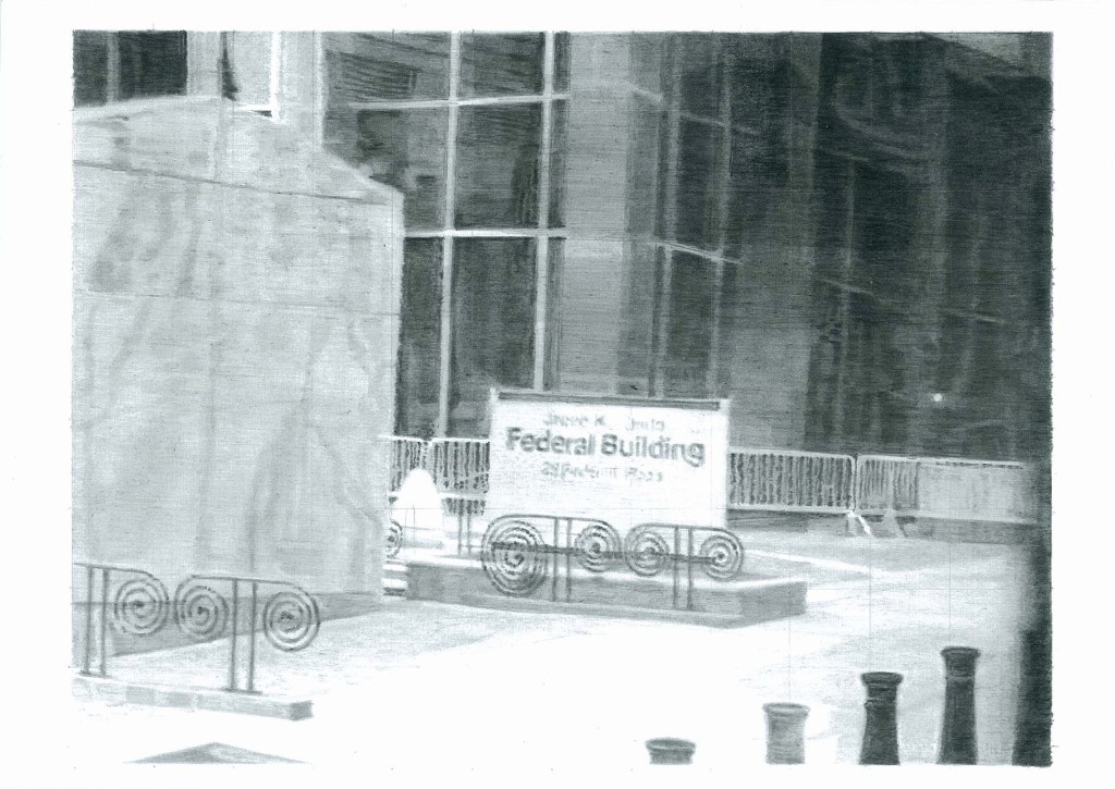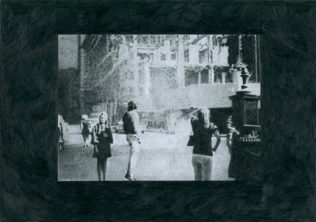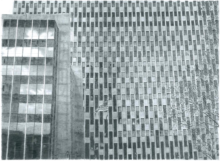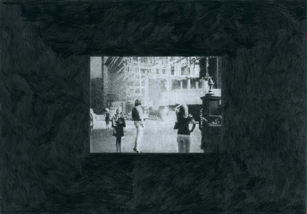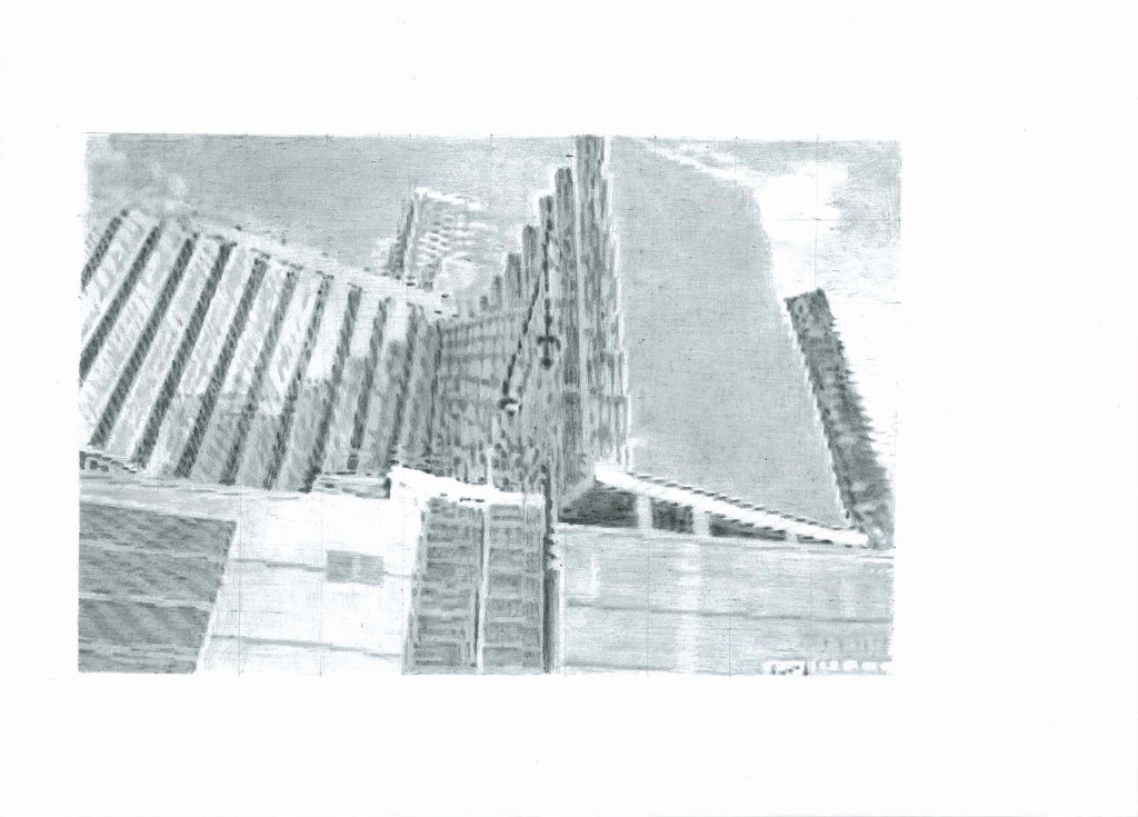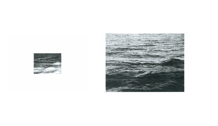 Reverberation (2012) Pencil on paper 21.0 x 29.7cm each. Two drawings made from a still image taken from Ernie Gehr’s film Reverberation (1969)