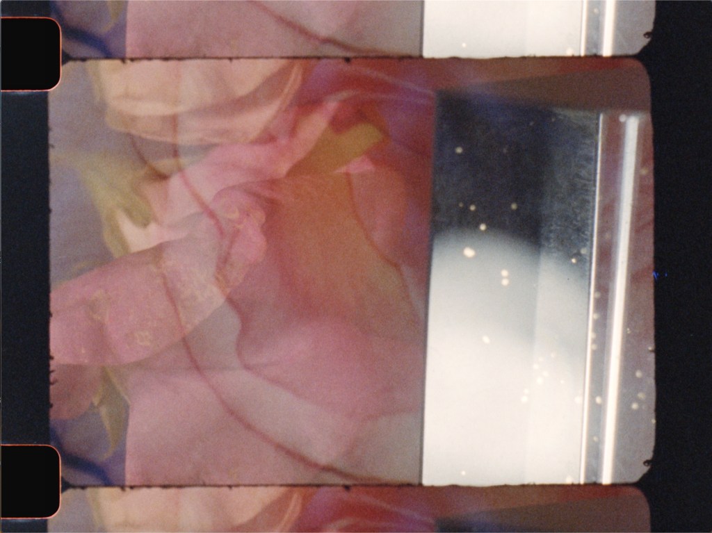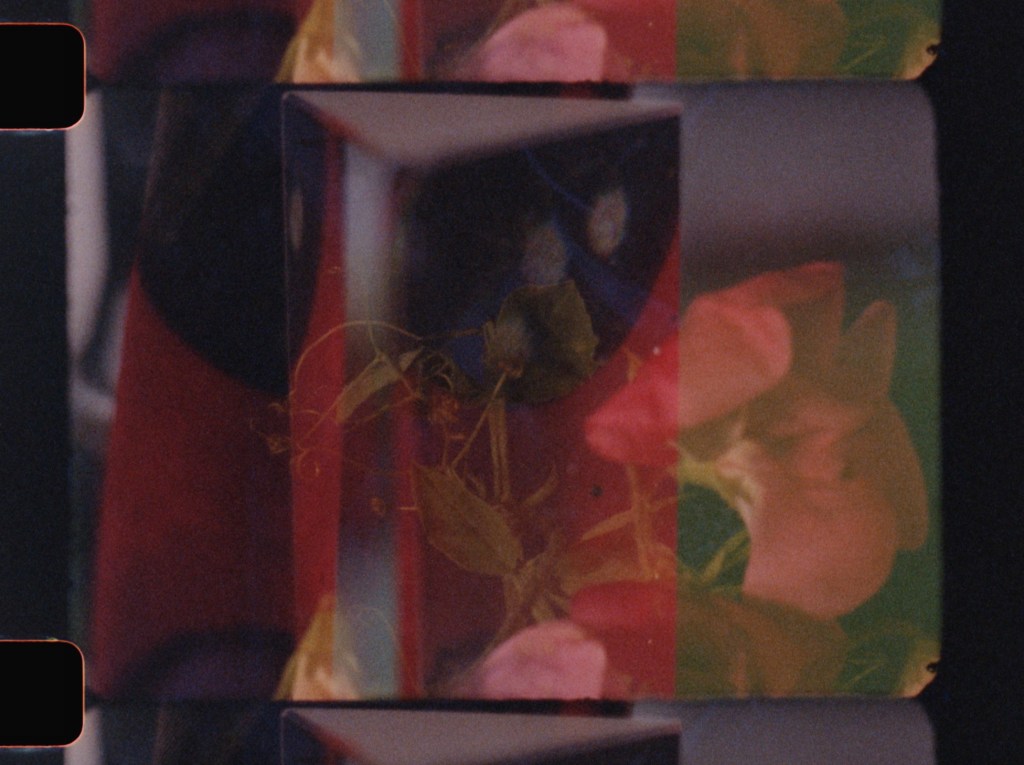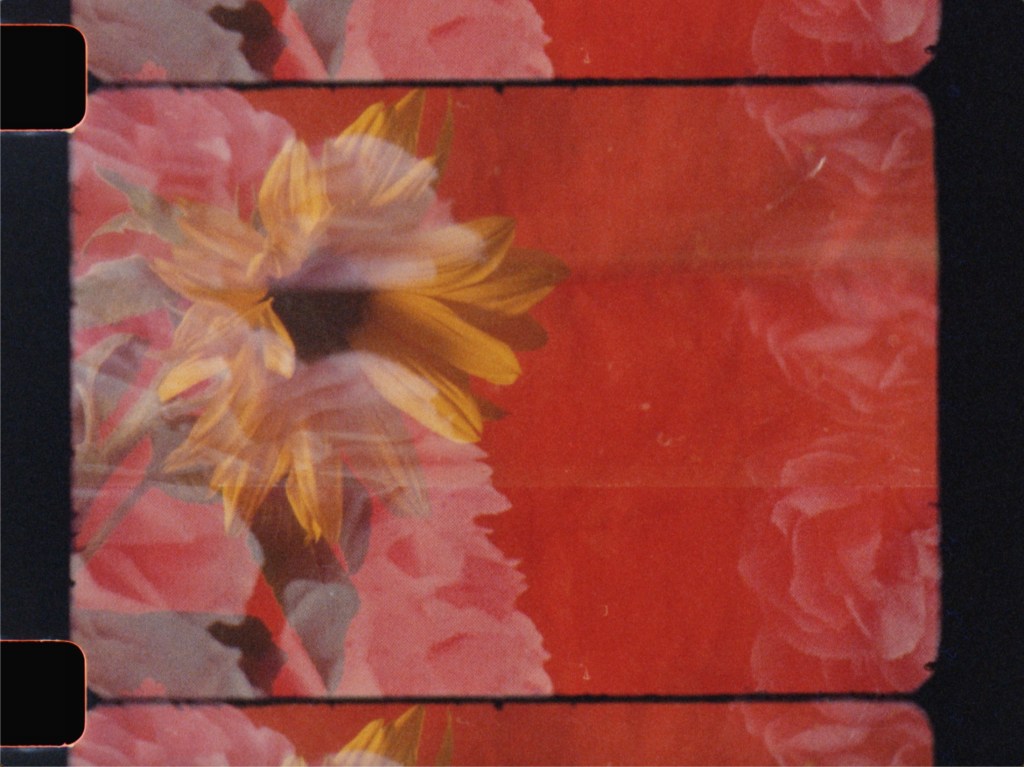 Bouquet (New Hybrids, Colour), Colour 16mm film, 3 minutes, silent, 2020. In collaboration with Alex Hetherington as part of his larger project Talking, Counting, Blinking, Noting: 16mm film as a collaborative action, 2019-2020. A project made together/apart during lockdown 2020. The 16mm film was passed through the camera first in Glasgow and then a second time in Stirling, registering dislocations in time and space within a single, collaborative, hybrid image.