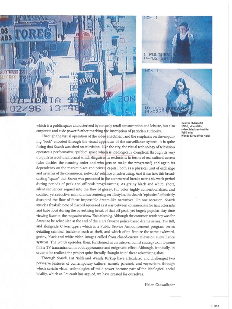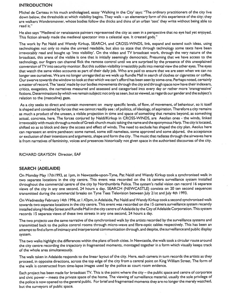 SEARCH (Adelaide 1996) was commissioned by the Telstra International Adelaide Festival ‘96 & The Experimental Art Foundation, Australia. Curated by Richard Grayson.