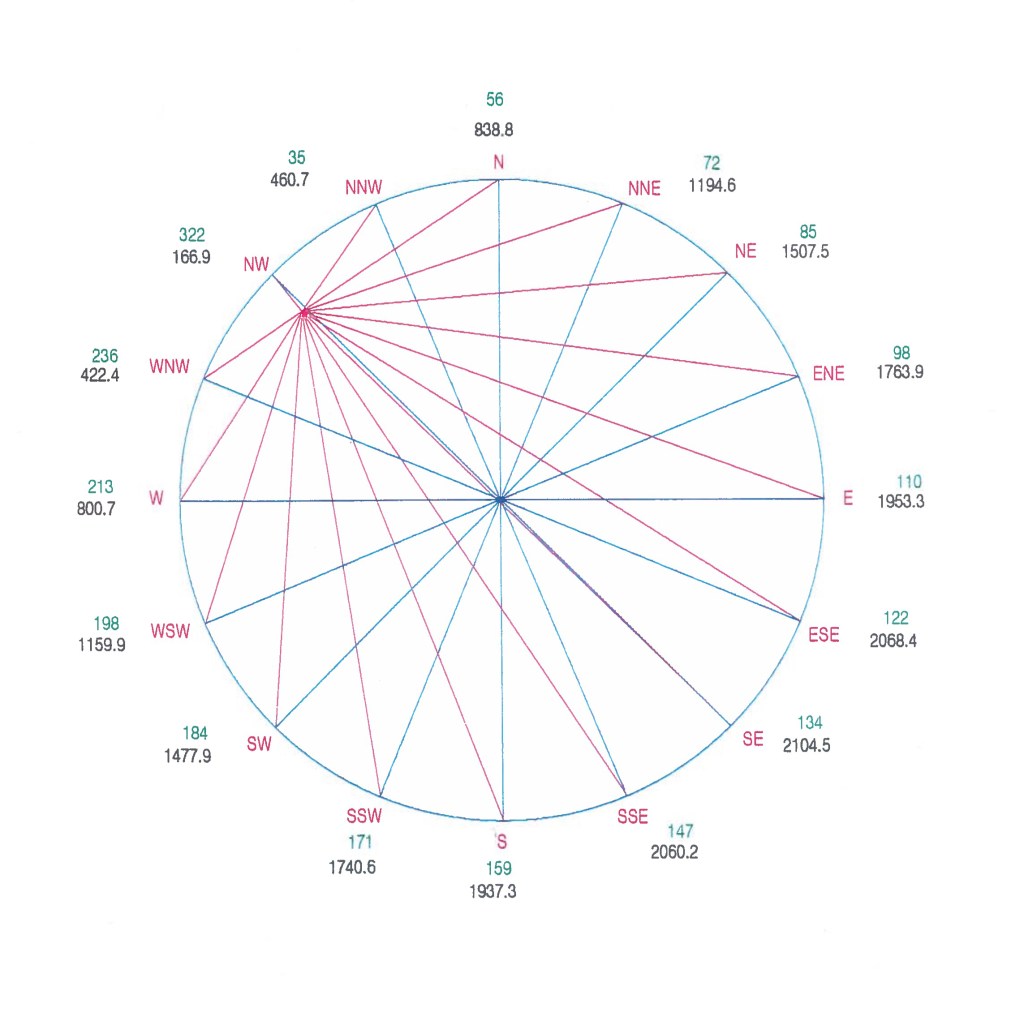 The colonial model of the city’s grid is orientated according to the ‘wind rose’ which underlies it, a diagram which reflects the direction winds blow from the cardinal points of the compass, and used in city planning to inform street orientation to avoid the direction of the strongest, most disruptive winds. The Vitruvian city plan, founded on an eight part wind rose, also reflects its basis in the proportional symmetry of the classical male ideal body.