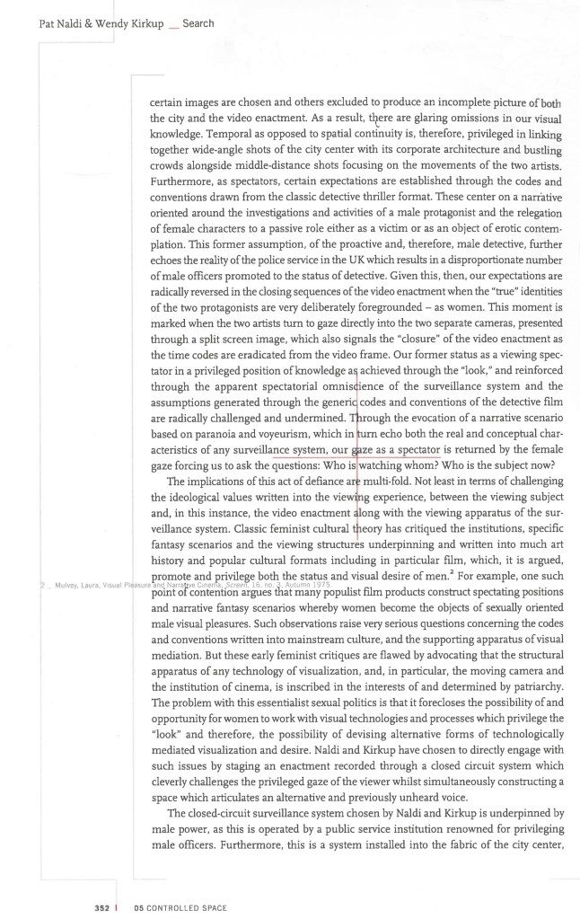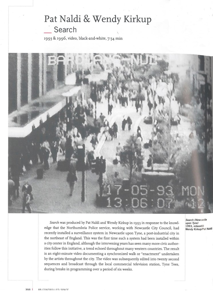 On Monday May 17th, 1993 at 1pm in Newcastle upon Tyne city centre a synchronised walk took place in two separate locations by Pat Naldi and Wendy Kirkup.