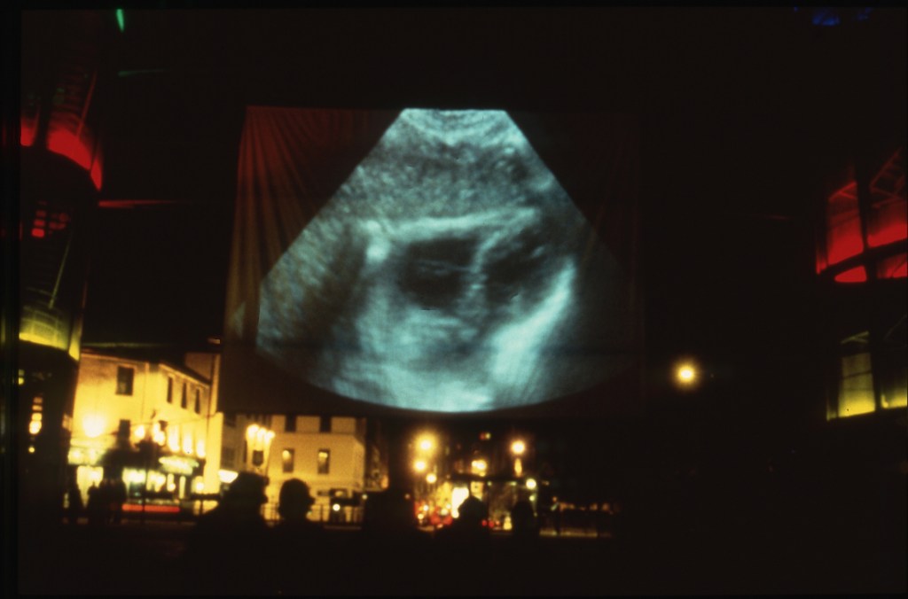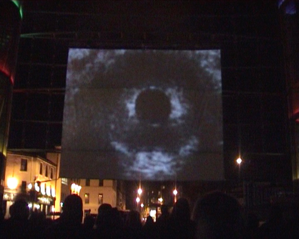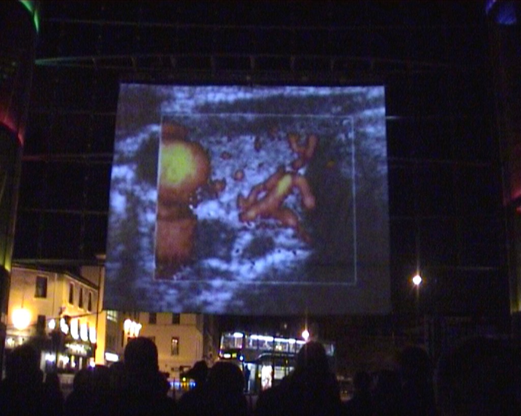Echo is a large scale multi-media artwork in which artist Wendy Kirkup has created a technological ‘body atlas’ of herself by using advanced Siemens Ultrasound techniques. The resultant 22 minute video. consisting of an abstract journey mapping internal body tissues and organs, will be broadcast to two different geographical sites simultaneously using satellite technology: the Hunterian Museum and the International Centre for Life. the massive projected images will be accompanied by an additional audio track, recorded using Doppler Ultrasound, of amplified recordings of the ‘echo’ of the artist’s blood circulating through her system.
