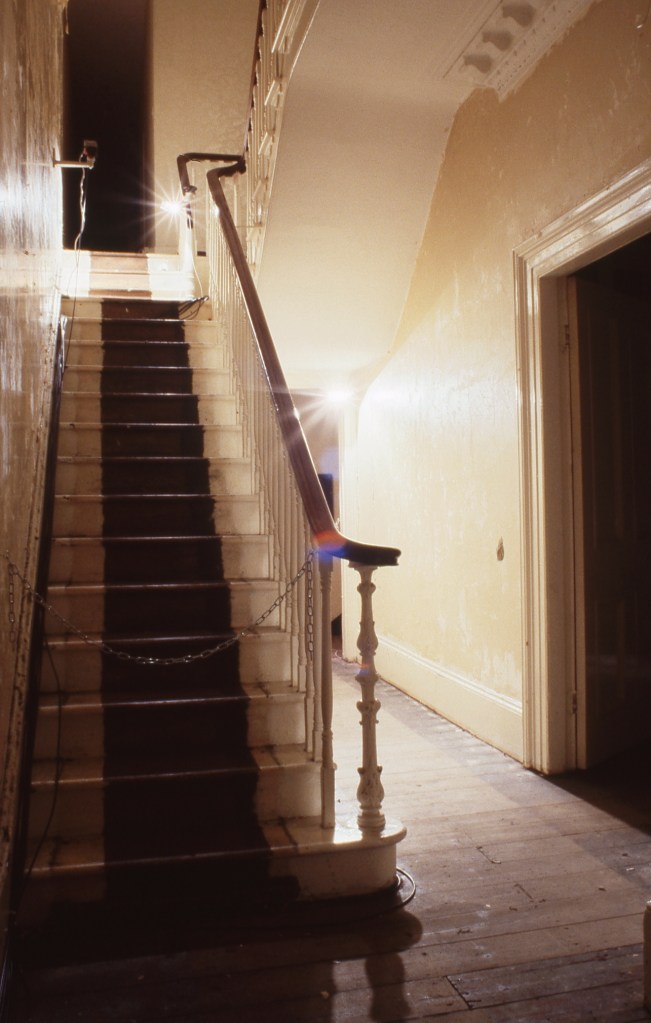 The interior of a disused Victorian house in Newcastle upon Tyne was made visible to visitors via twelve CCTV cameras situated throughout its rooms, relaying images back to monitors installed in the former reception room of the house. Simultaneously, a looped recording of personal memories played continuously on answerphones situated in an adjacent room.