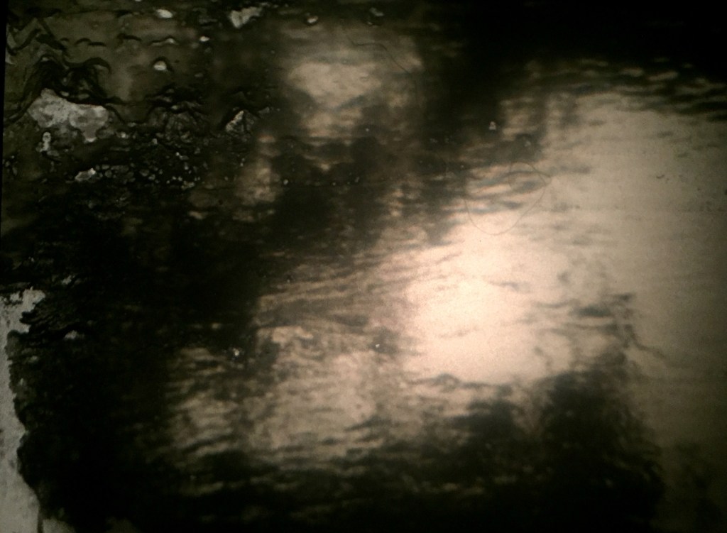 Wendy Kirkup’s uses of a series of complicated precisely cut mattes fixed to her Bolex clockwork camera with a matte box, for uses with a 10mm (wide) lens plays with a cinematic ‘game of consequence’, pure experiment and the filmic collage. I think too about the term blind that suggests that ‘sight’ (knowing, feeling, understanding, trust, visualizing, hallucinating, dreaming, a feel for things) comes from places other than the eye. Call it instinct. On the image plane apparitions from different ‘pasts’ are assembled together in punctures, folds, abrasions and synthesis. Light plays a part too, impure, it comes in often uninvited in bursts and different rhythms. Camera chimeras, exchanging the exposed with the unexposed, with the rewind key and repeated, multiple exposure, a tallying through time and numbering on frame counters, a counting-down which results in the creation of an impossible image. Fractured, vulnerable, damaged even. Evading real time. Liberated from real time. Not disappearing then after all, conjured to the surface, appearing.