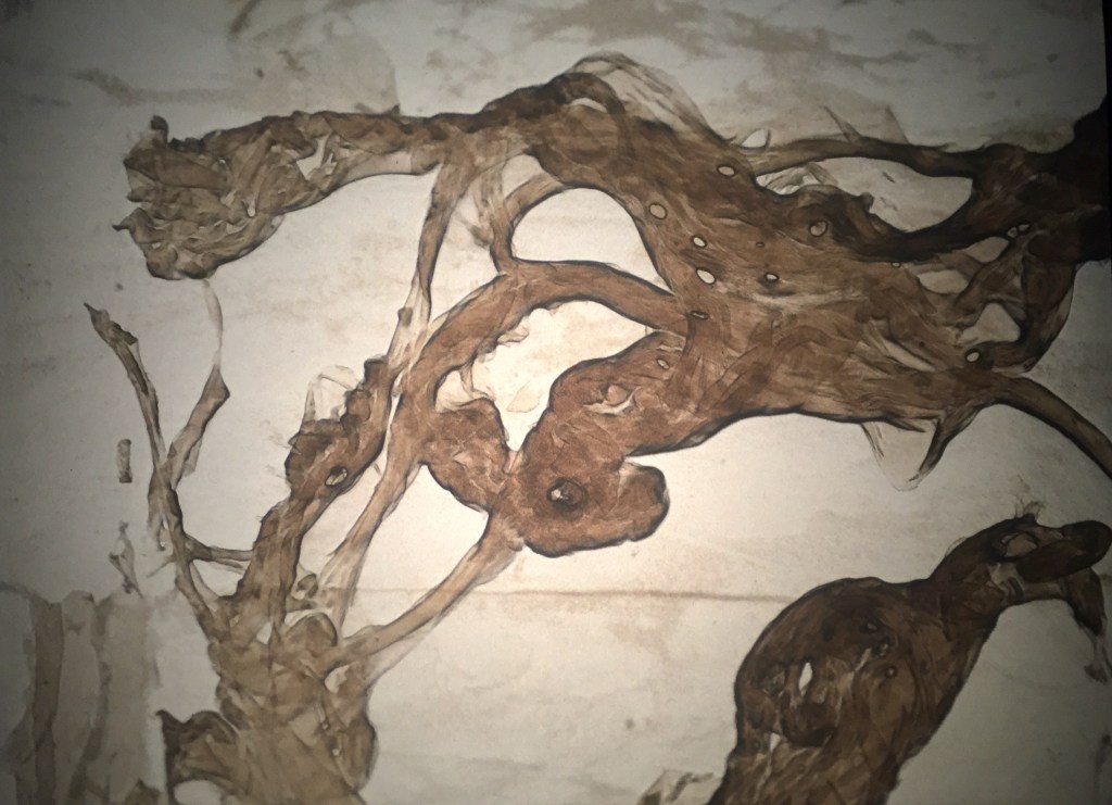 16mm film, B&W, 3 mins, silent. Footage developed by James Holcombe using a mordençage process, 2021. Research towards the making of rough cut botanical (2022)