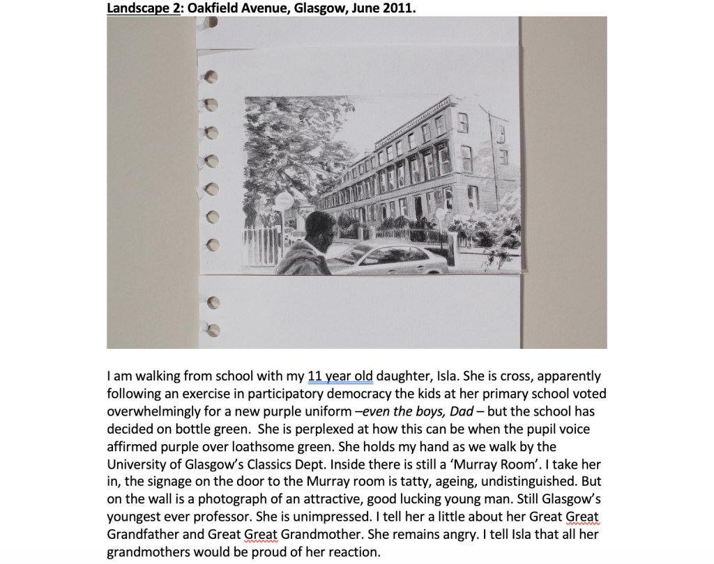 Deceptive landscapes: fragments of unreliable memory (2011), was a performance lecture imagined, composed and performed by Simon Murray and Wendy Kirkup. Provoked by reflections on the multiple meanings enshrined in the word landscape, this performance played with landscape as inscape, as family history, as longing, as unreliable memory and as always ‘bubbling up around us’ (Mike Pearson). These fragments play particularly with the real and imagined memories of heroic but complex women in Simon’s family.