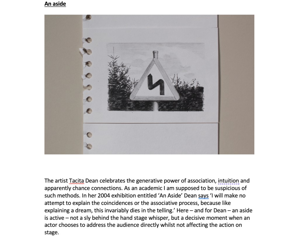 Tacita Dean says she is “always filming things that are about to disappear”, while in many discussions and observations on her films and filmmaking she often speaks about “shooting blind”, in The Conversations Series (No.28) with curator Hans Ulrich Obrist, for example.