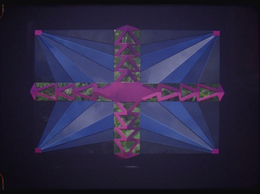 Matte Box test (in progress). 16mm film, 3 minutes, silent. Made using a Bolex camera and matte box, 2022. Elaborated from the composition of one of Swiss healer, researcher, and artist Emma Kunz’s visionary drawings, the stills below reveal otherwise largely concealed images within the film as it plays in reel time.